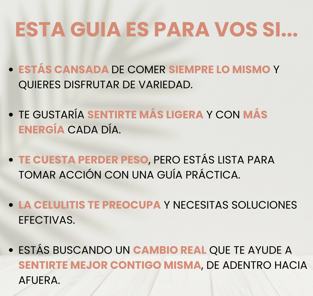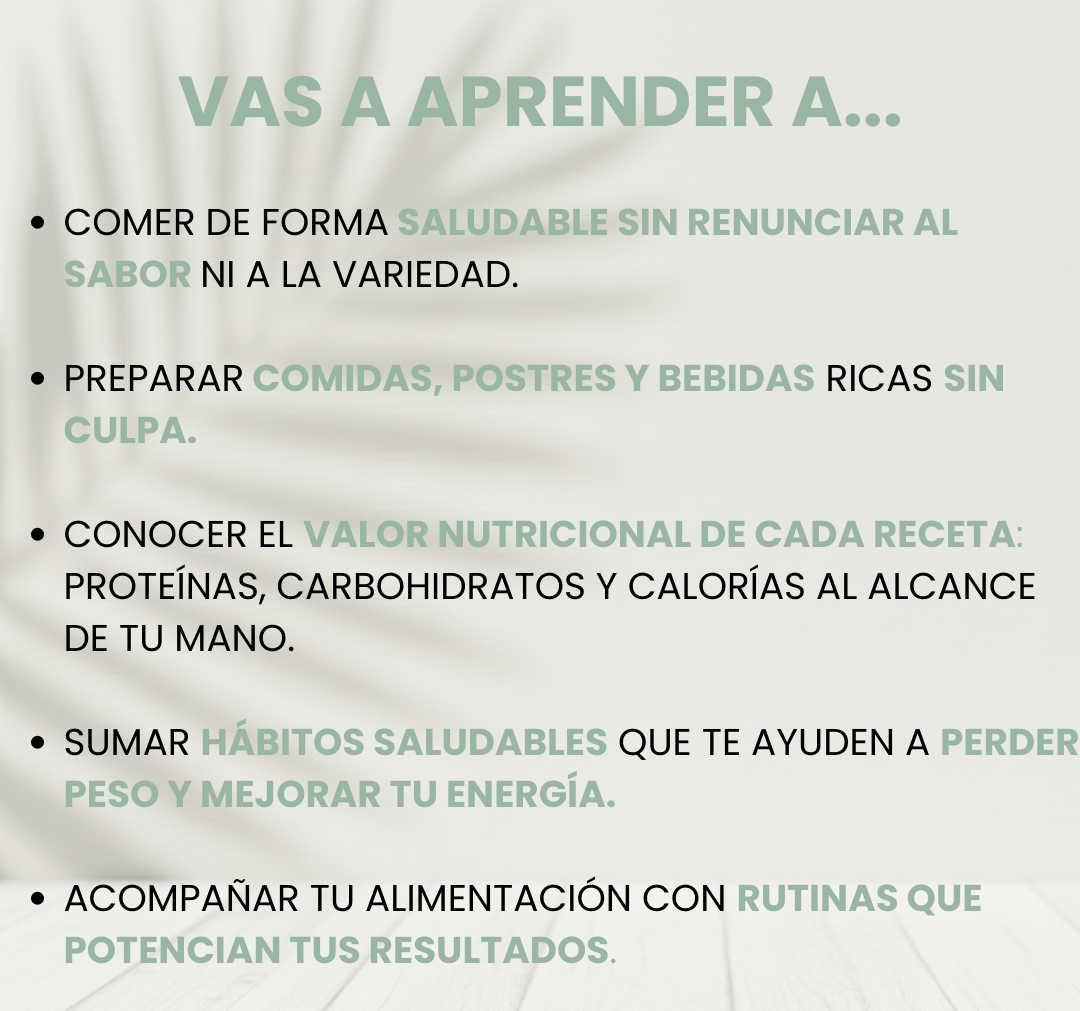 Para nada. El recetario está diseñado para que aprendas a comer rico, saludable y sin prohibiciones, manteniendo un equilibrio que puedas sostener en el tiempo.